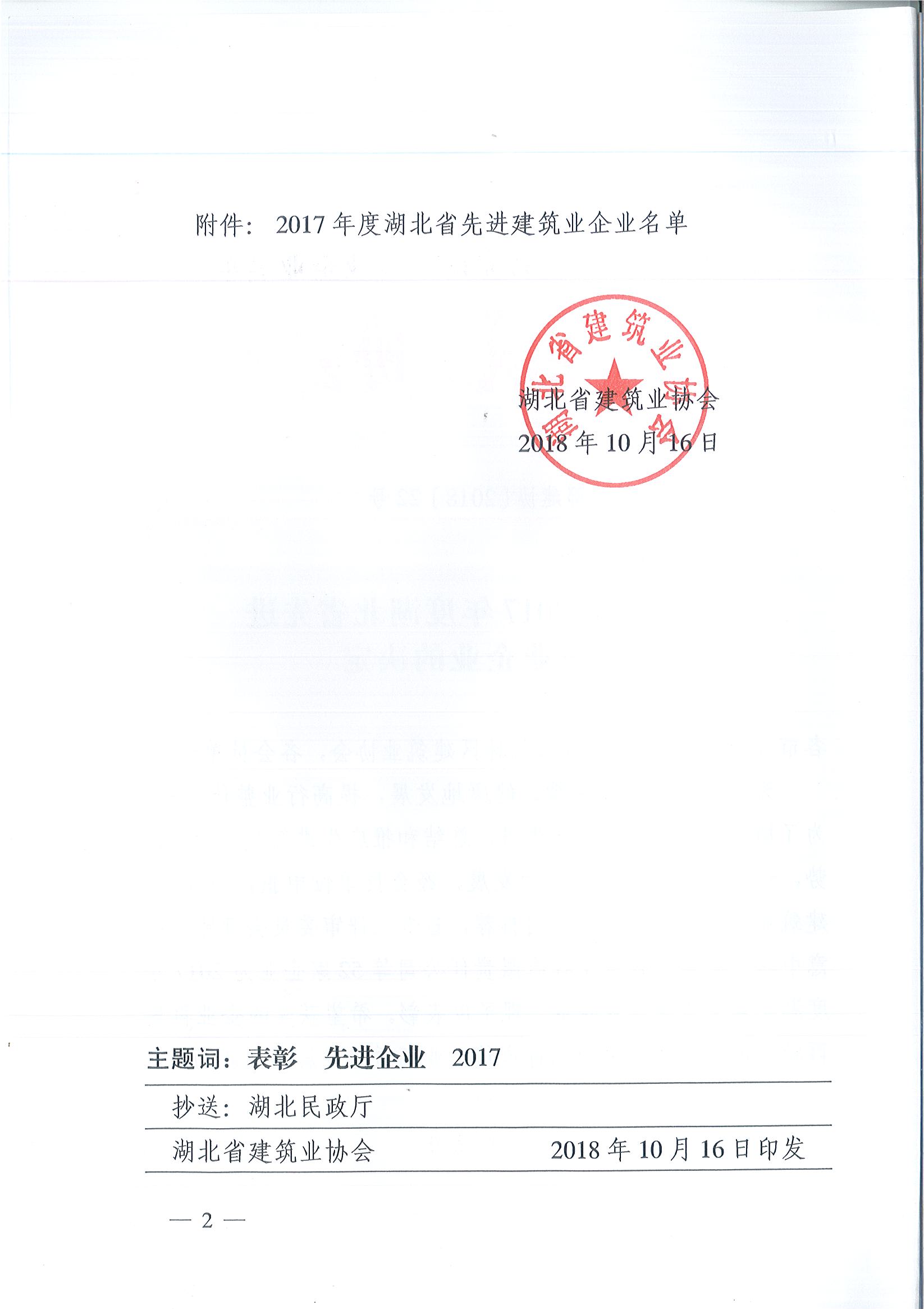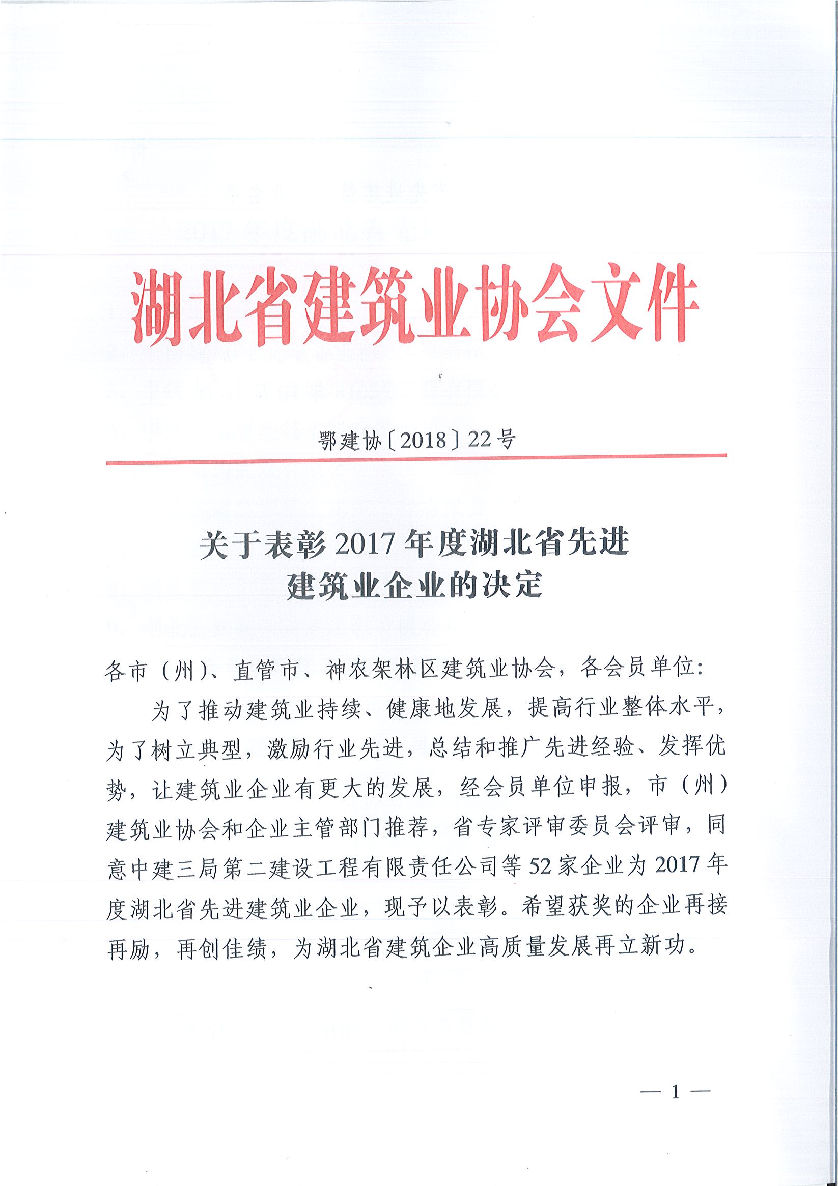 關于表彰2017年度湖北省先進建筑業企業的決定
