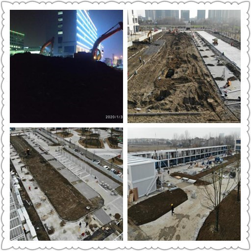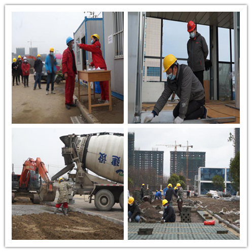 時間緊,任務重。集團公司和各分公司緊急動員,擬定施工方案、聯系施工機械……,從號召到集結,僅僅2小時,100多名管理和施工人員全部到位,40多臺套施工機械有序進場,設計、施工、材料采購和各項調度同步推進。然而,集裝箱板房材料生產廠家遠在千里之外,沒有上級文件通知不能復工,春節假期在廠工人少,運輸車輛不愿意去湖北等等一系列問題擺在面前。但是,公司總經理張大華想千方、設百計,為生產廠家排憂解難,最終使得集裝箱板房材料及時運達施工現場。