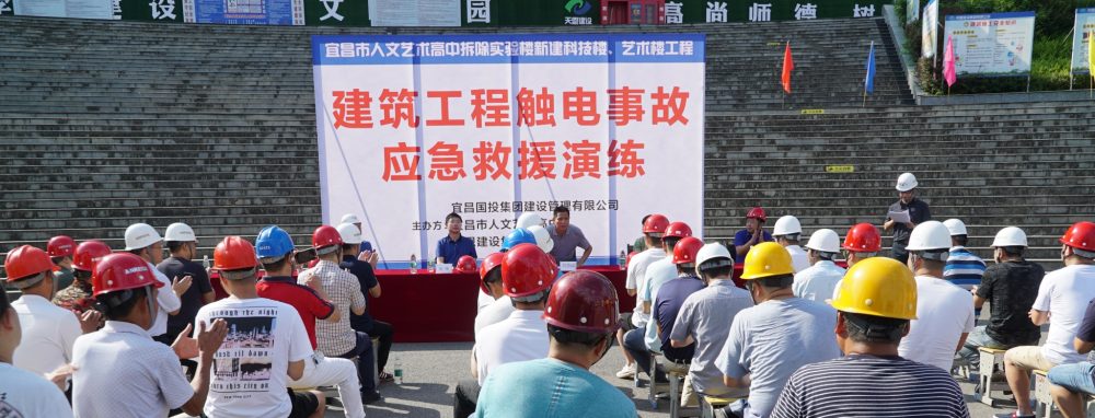 8月13日上午,宜昌國投集團建設管理有限公司、宜昌市人文藝術高中和天恩建設集團有限公司在宜昌市二中藝術樓、科技樓項目現場舉辦安全救援演練。宜昌國投集團黨委副書記、總經理劉忠誠,宜昌市人文藝術高中工會主席秦慧、天恩集團總經理張大華出席了活動,項目參建單位負責人及項目現場作業人員共計60余人參與活動。