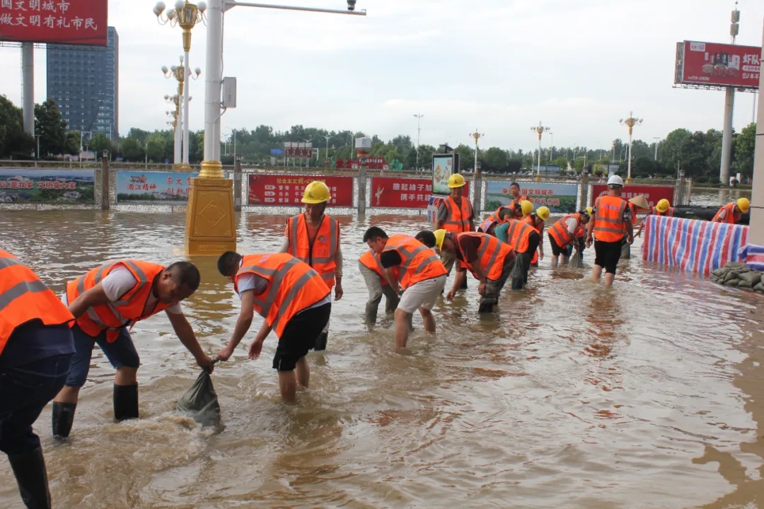 他們不顧身上的泥水和汗水,也不辭辛勞連續作業,將長長的擋水墻逐步加高,歷經10多小時,累計轉運沙土1萬余袋,保證了高鐵站機房和候車大廳免被水淹,確保了高鐵站正常運轉和旅客進出安全。